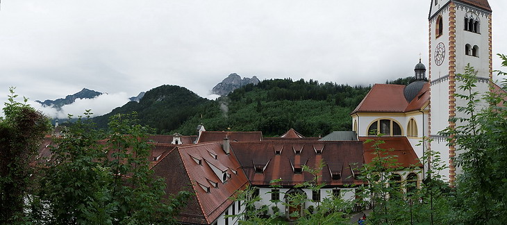 Die Benediktinerabtei St. Mang wurde bereits im neunten Jahrhundert als Kloster der Bischöfe von Augsburg gegründet, welche auch das Hohe Schloß über der Stadt errichten liessen (1486 - 1505). Heute befindet sich dort eine Filialgalerie der Bayerischen Staatsgemäldesammlungen.