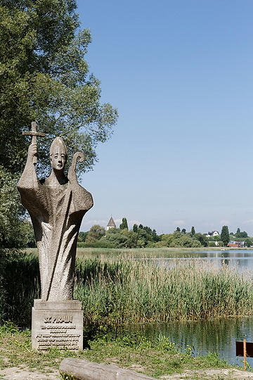 Smaller boats can use the Bruckgraben ditch as an abbreviation on their way from Allensbach to Constance whereas sailing boats still have to turn round the island as there is not enough space below the road bridge. A statue is referring to St. Pirmin, the founder of Reichenau Abbey in the year 724.