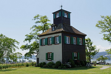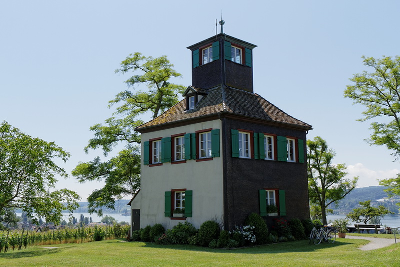 Hochwart (438 m) is the highest point on the island and therefore an excellent vantage point. The two-story teahouse was built in 1839 and is surrounded by vines of the smallest independent winegrowers' cooperative in Baden. Up to today the grapes of the cooperative are still pressed in the cellar of the monastery.