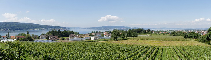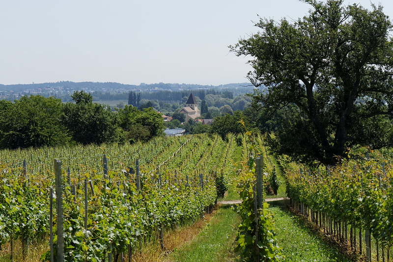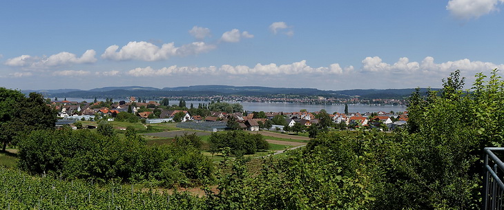 Von hier aus überblickt man die gesamte Insel mit Schiener Berg, Hegau und dem Bodanrück dahinter sowie den Schweizer Seerücken mit dem, ehemals auch zur Abtei Reichenau gehörenden Schloss Salenstein auf der gegenüberliegenden Rheinseite.