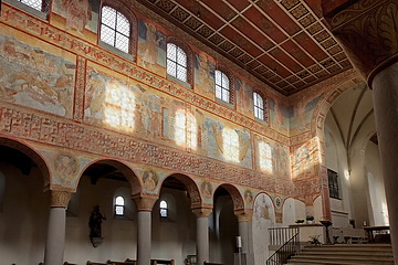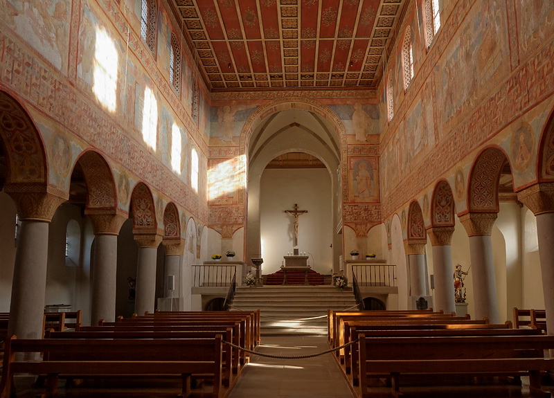The St. Georges Church belongs to the oldest churches of this type in Europe. The frescos from the second half of the 10th century are important statements for the painting of the Reichenau monastery. Unfortunately these wall paintings are very much affected by the frequent opening of doors due to the great number of visitors as humid air from outside the church is condensing on the cold walls and promotes the development of mildew.