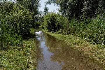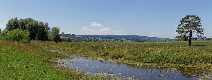Every spring the water level of Lake Constance is rising due to the alpine snowmelt. The meadows are flooded and it's not before winter that they can be mowed again. As a precaution to avoid the colonisation of bushes like buckthorn, dogwood or willows this mowing is done by conservationists once a year.
