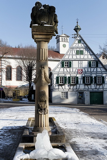 In dem kleinen Wäldchen westlich des Schlosses befindet sich der Schlossteich mit einer Kolonie von Graureihern, die sich in den alten Bäumen nierdergelassen haben. Die Kirche St. Leonhard wurde als Ersatz für die beim Schlossumbau 1812 abgerissene Schlosskapelle errichtet und beherbergt unter anderem eine der ältesten Glocken in Baden-Württemberg.