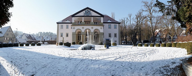 Von oben betrachtet deutet wenig darauf hin welches Schmuckstück sich im Ortszentrum von Dätzingen, links unterhalb der Kirche, befindet. Nach dem Ende der 500-jährigen Malteserherrschaft im Jahr 1803 gelangte der Ort Dätzingen zum Königreich Württemberg und das Schloss in den Besitz des Grafen von Dillen, der den damaligen Hofarchitekten Nikolaus Friedrich von Thouret mit dem Umbau im klassizistischen Stil beauftragte.