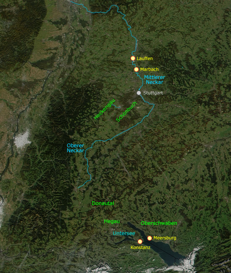 DONAUTAL / HEGAU · Fridingen / Knopfmacherfels / Wildenstein · Rauher Stein / Eichfelsen / Hausen / Schaufelsen · Donauversickerung / Aachtopf · Hegaublick / Witthoh / Mägdeberg KONSTANZ / UNTERSEE · Konstanz - Naturschutzgebiete am Untersee · Reichenau - Allensbach - Bodanrück OBERSCHWABEN · Aussichtspunkte - Meersburg - Sipplingen HECKENGÄU · NSG Büchelberg - Venusberg - Dachtel |