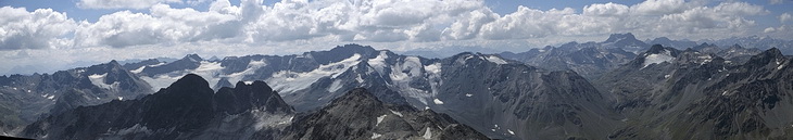 The summit panorama of Schwarzhorn is similar to the one of Radüner Rothorn.