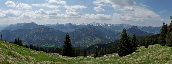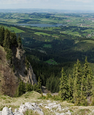 Edelsberg (1629 m) and Alpspitz (1575 m) belong to the northmost peaks of the Allgaeu mountains. Both of them are nice vantage points and can easily be accessed from Nesselwang (900 m) or even easier from the Alpspitz cableway which leads up to an altitude of 1500 m.