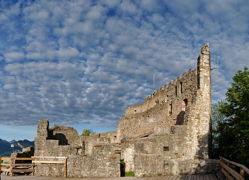 The castles of Hohenfreyberg and Eisenberg are located on a ridge north of Pfronten. Eisenberg, the older of both was already built in 1315, 100 years before its neighbour Hohenfreyberg. Both castles were abandoned and burnt down at the end of the Thirty Years' War and are uninhabited since. Meanwhile both complexes were heavily restored and are a worthwhile destination not only because of the nice panorama.
