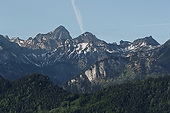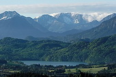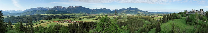 The panorama belongs to the best ones of the entire Allgaeu: Hopfensee, Weißensee and behind them the Allgaeu and Tyrolian mountains up to Schneefernerkopf in the Wetterstein massif - Zugspitze, the highest mountain in Germany is however covered by the pyramid of Säuling.