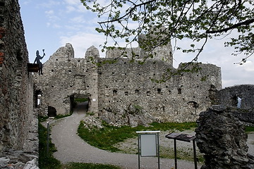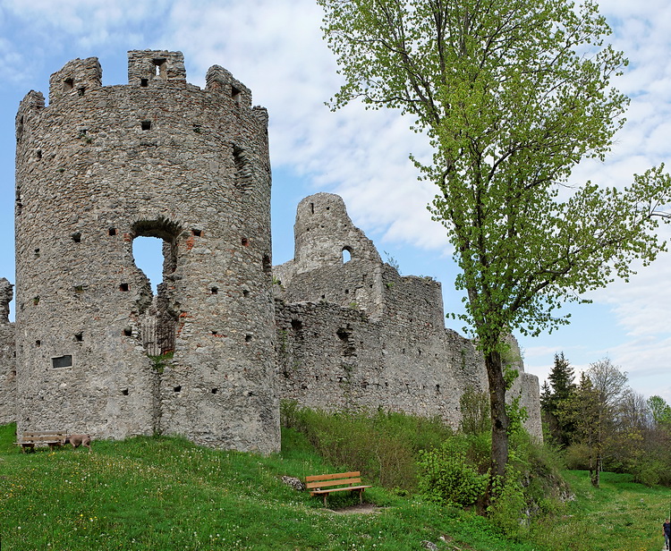 The rectangular remainders of a tower in the western part of the outer bailey are still serving as panorama platform.