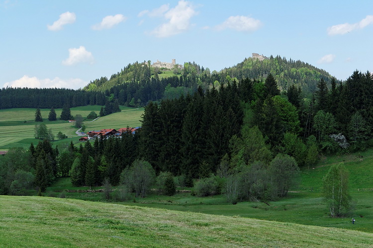 Die Burgen Hohenfreyberg und Eisenberg liegen weithin sichtbar auf einem Höhenrücken nördlich von Pfronten. Eisenberg, die ältere der beiden wurde bereits im Jahr 1315 angelegt, 100 Jahre vor ihrer Nachbarin Hohenfreyberg. Beide Burgen wurden am Ende des Dreißigjährigen Krieges aufgegeben, in Brand gesetzt und sind seither unbewohnt. Mittlerweile wurden beide Anlagen aufwändig saniert und sind nicht nur wegen der exzellenten Aussicht ein lohnendes Ziel.