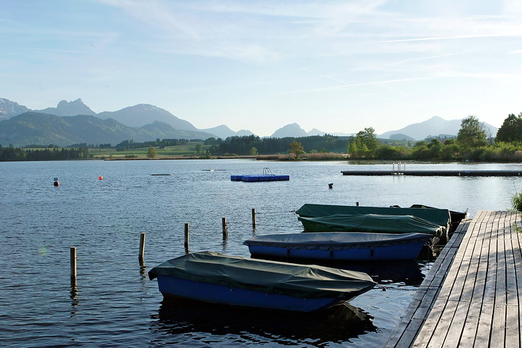 A trip to Hopfen at the lake with the same name can be recommended in nearly every season of the year- even in foggy January, the quietest month in this spa town. While the ski-resorts are fairly crowded a walk around (or across Lake Hopfen can be a quite lonesome undertaking. In weather conditions like these a trip to the top of Tegelberg might be a good solution as it is very often blazed by the sun.