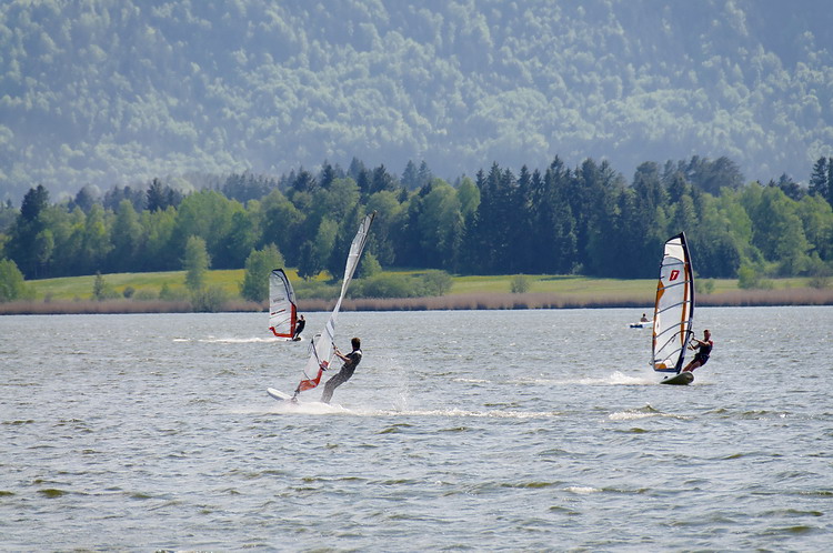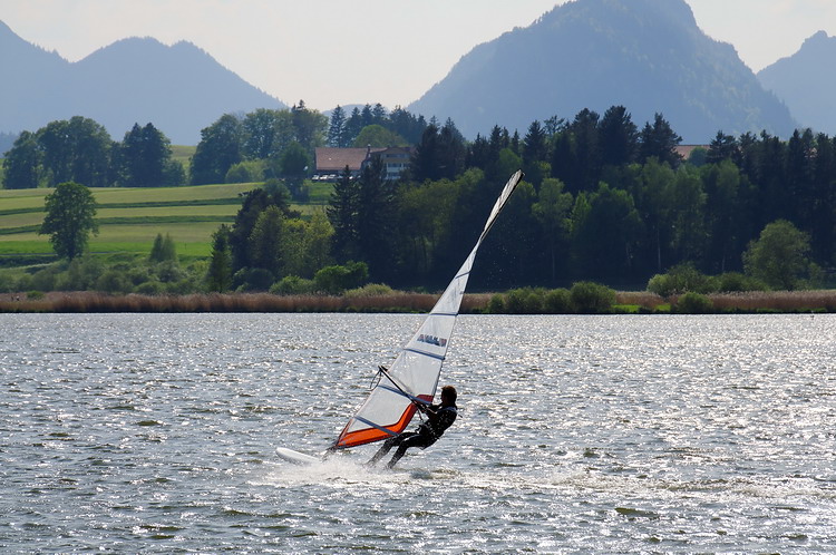 The summer months are much more lively as Lake Hopfen is a well-known destination for all kinds of water sports enthusiasts - even if a cold-front is passing by.