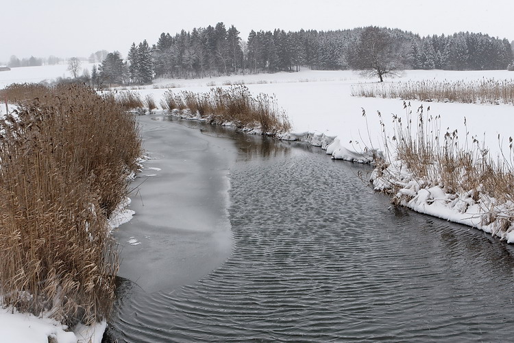 Dieses Motiv gibt es ebenfalls nur im Winter: Hopfen vom 'Wasser' aus gesehen.