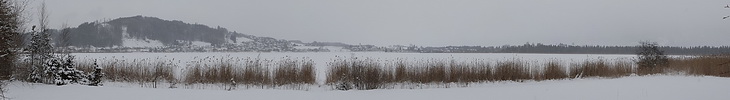 Die Landschaft rund um den Hopfensee war zwar tief verschneit, der 7 km lange Rundweg um den See jedoch hervorragend präpariert.