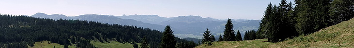 Der Blick auf den Bregenzerwald mit Winterstaude, Mittagsspitze und Dornbirner First direkt unterhalb des Kojensteins.