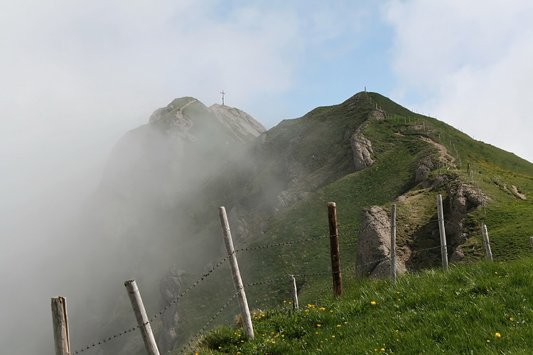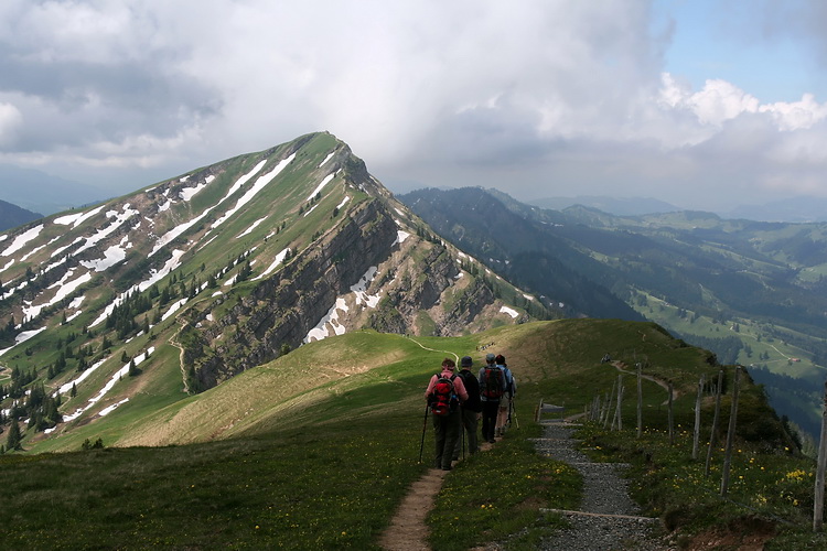 Danach geht es immer den Grat entlang bis zum Hochgrat, dem mit 1834 m höchsten Punkt der Nagelfluhkette.