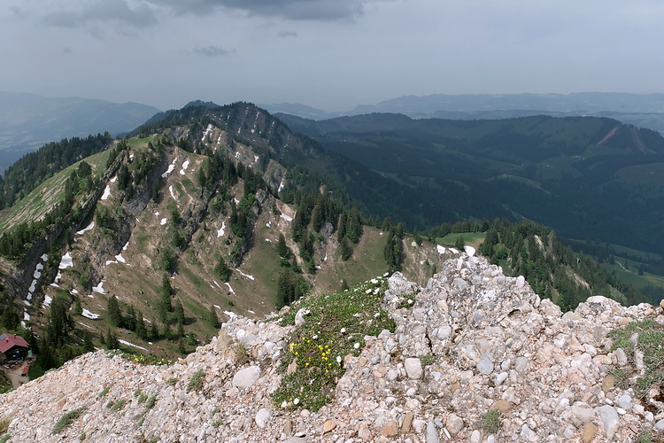 Probably the most popular and due to the Hochgrat cableway also the most frequented summits are Hochgrat and Rindalphorn. It is only a few people who carry on to Mittag on the eastern end of the Nagelfluh Ridge which means a 12 km hike crossing half a dozen summits including quite as many ascents and descents in about 6-7 hours.