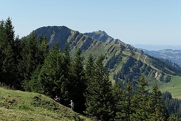 Already at the beginning of our hike we had an excellent view from Grünten above Sonthofen up to Widderstein in the Austrian Alps.