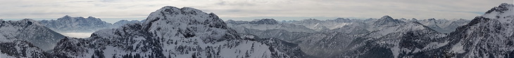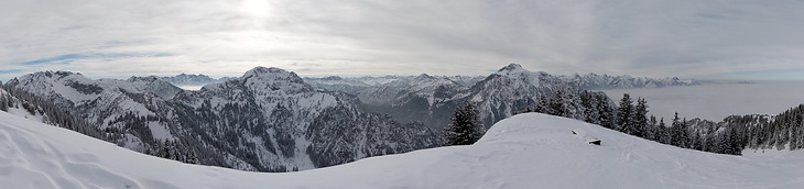 The goal is reached quickly and one can enjoy a perfect panorama from Zugspitze to the northmost peaks of the Allgaeu mountains.
