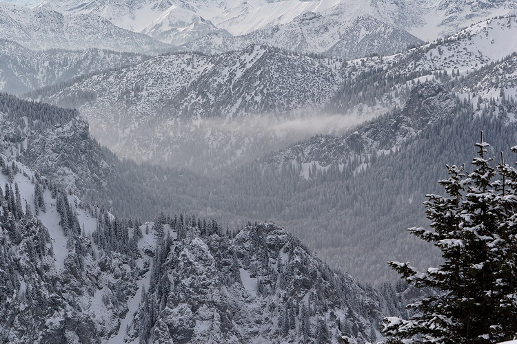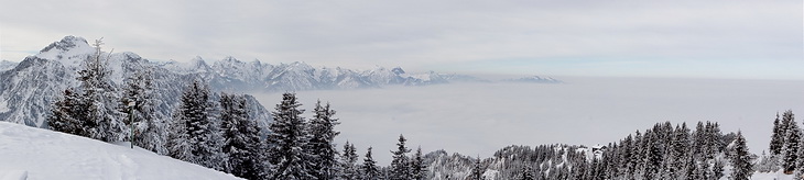 Even if you don't like skiing, Tegelberg is a nice place to go for a walk and enjoy the winter sun. Of course we do not recommend to climb Brandnerschrofen in snow conditions like these but it is quite worthwhile to follow the track up to a vantage point about halfway to the summit.