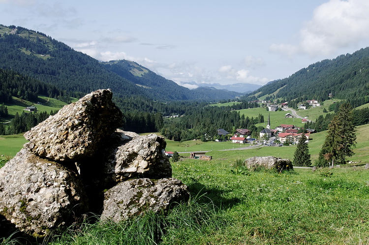 Zurück an der Oberen Balderschwanger Alpe ein letzter Blick auf die Felsplatten des Siplinger Grates.