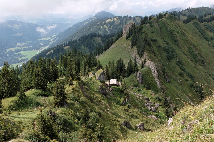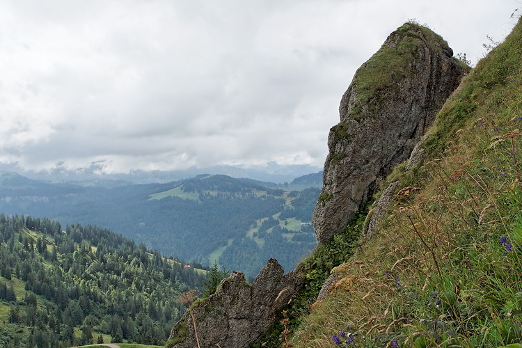 Ebenfalls im Abstieg wurde dann auch das Wetter besser und die Nagelfluhkette mit Hochgrat, Rindalphorn, Buralpkopf und Stuiben lag vor uns.