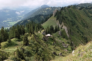 Back at Obere Balderschwanger Alpe we looked back to the rock slabs of the Siplinger Ridge.