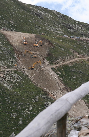 Even without the new cableway the effect of ski tourism becomes apparent. The normal ascent to the Hut was barred because of stonefall.