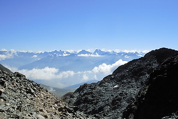 View from the top of Rotpleiskopf (2936 m) and Grosser Furgler (right picture).