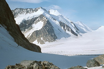 View to 'Grosses Wannenhorn' (3905 m) which is climbed diagonally from left to right. |