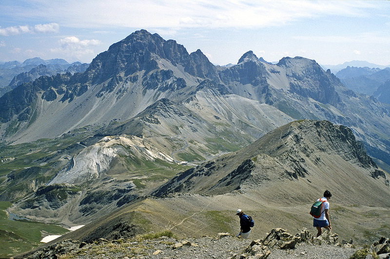 View from the summit down to the Galibier Pass with Grand Galibier (3229 m - left) and Roc Termier (3078 m).