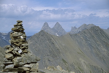 Daneben der Blick nach Nordwesten auf die Aiguilles des Arves (3510m - 3509m - 3363m). Rechts davon die Pointe Argentiere (3237 m).