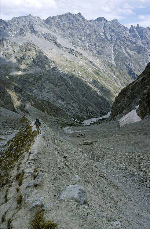 The western Pelvoux Pass with the Aiguille de Pelvoux and the view back to Pre Madame Carle.