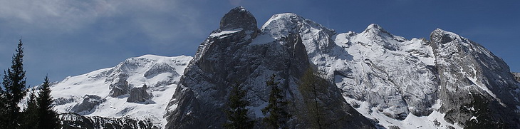Der Fedaja Pass am Fuss der Marmolada gehört zu den weniger aussichtsreichen Pässen obwohl man sich am Fusse des höchsten Dolomitenberges befindet. Auf der Fahrt dorthin gibt es allerdings einige interessante Aussichtspunkte, wobei der Gran Vernel der Marmolada eindeutig die Schau stiehlt. Auch die Pala Gruppe ist gut zu erreichen, doch zuerst fahren wir nach Osten zum San Pellegrino Pass, wo Monte Pelmo und Civetta die dominierenden Gipfel sind. Zurück geht es über den Valles Pass zum Rolle Pass der im südlichen Ausläufers der Dolomiten am Fuße der Pale di San Martino liegt und vom markanten Cimon della Pala (3185 m) überragt wird. Der Pass ist im Sommer der optimale Ausgangspunkt für Wanderungen in der Umgebung der Pale und des Naturparks Paneveggio - Pala di San Martino.