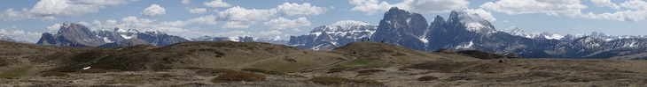 The first trials using a panorama tripod. Besides the rock summit of Schlern Langkofel and Plattkofel are the symbols of Seiser Alm.