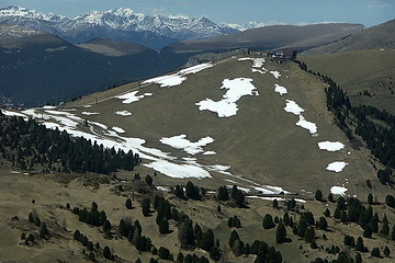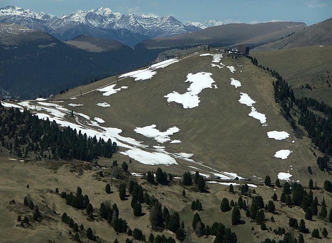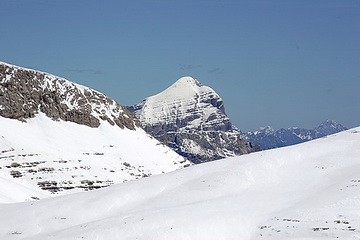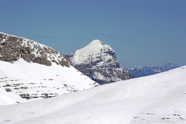 Another tour which we can recommend lead us through the Fassa Valley to the Pordoi Pass and via Sella Pass, Grödner Valley and Seiser Alm back to Tiers. Piz Boe (3152 m) would have been the ultimate panorama summit but at this time of the year it is rather a ski tour. We were pleased with Sass Pordoi (2950 m) which also shows an interesting panorama.