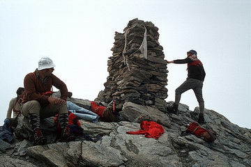 The prayer flags at the summit were brought along from the Himalaya by the landlord of the Benevolo Hut.