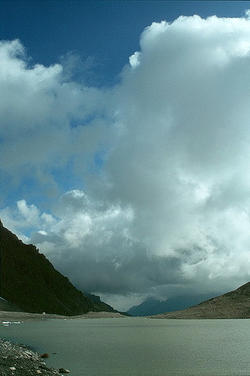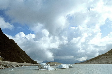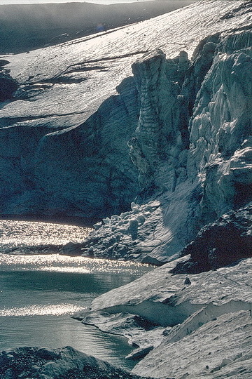Arctic impressions at the Goletta Lake (2900 m). At this time the Goletta Lake was one of few alpine lakes with a glacier calving directly into it. When we returned from the summit the serac shown in this picture had collapsed into the lake.