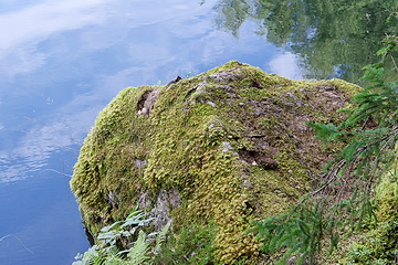 The remainders of the landslide are still visible on the southern banks of the lake. The enormous rocks are overgrown by moss and fern providing it with a special touch.