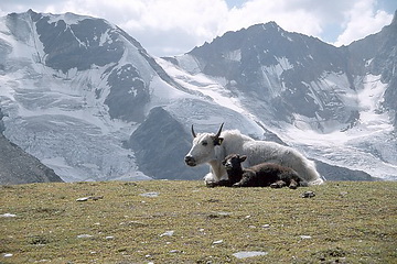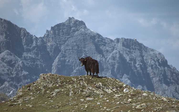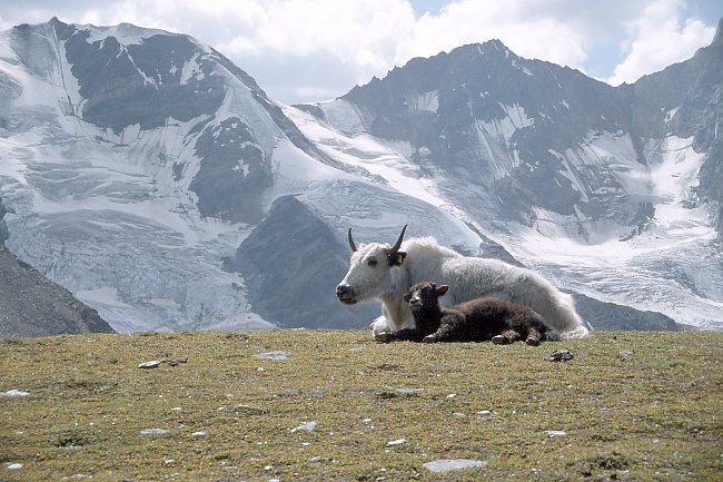 Yaks oberhalb der Schaubachhütte. Tibetian Yaks a short way above the Schaubach Hut.
