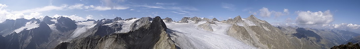 The summit panorama gives a first impression of Ruderhofspitze and Lisenser Glacier and made us feel like climbing Rinnenspitze which is hidden behind the dark summit in the center.