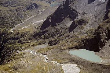 The traverse of Grosser Trögler leads down to the Sulzenau Hut where some steep grass slopes and a few exposed parts have to be handled with care.
