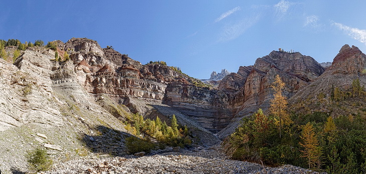 The impressive upper end of the canyon below the summit of Weisshorn is a rich source for geologists.