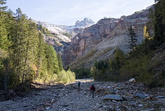 Another worthwhile point of interest about 10 miles further south is Bletterbach gorge which is also known as 'Grand Canyon of South Tyrol'. The erosion of 10 million tons of rock on the western side of Weisshorn has formed a canyon which is 5 miles long and up to 400 m deep, giving a unique insight into the formation history of the Dolomites. A trail illustrated with numerous information boards is leading through the gorge up to a place called 'Gorz', the impressive rock basin below the summit of Weisshorn.