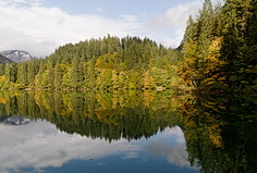 Lago do Tovel is also known as the 'Red Lake' due to a species of algae giving the water a reddish color - a phenomenon which occured for the last time in 1964.