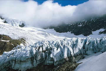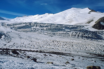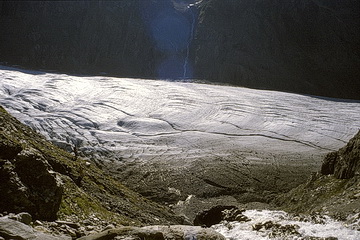 In 1985 there was an interesting panorama covering the wave-like glacier which does not exist anymore as the tongue of the glacier is melting away into a newly born lake.