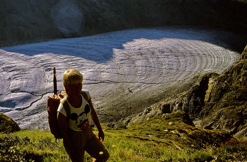 Kurz unterhalb der Trifthütte hatte man 1985 einen - mittlerweile historischen - Ausblick auf die Wellen im Triftgletscher dessen Zunge sich mittlerweile in einen Gletschersee auflöst.
