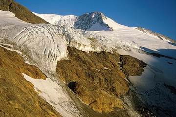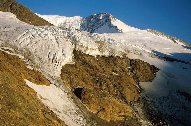 Oberhalb der Trifthütte der Hintere Tierberg (3444 m - links), unser eigentliches Ziel, ein Durchkommen zum Hinteren Tierberg war im Frühherbst wegen der Spalten allerdings nicht möglich.