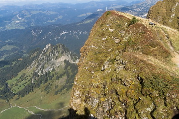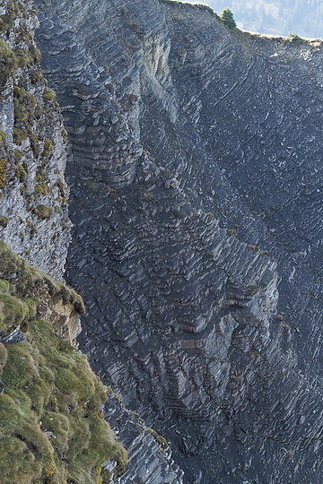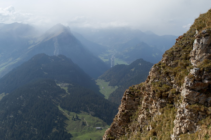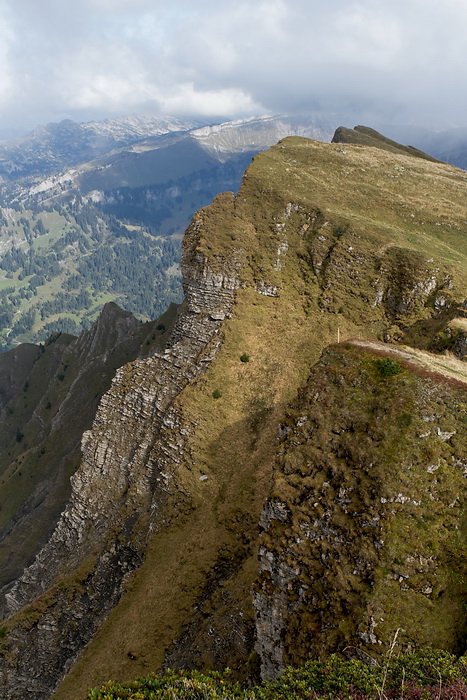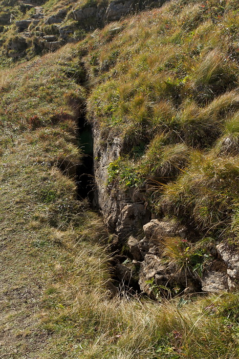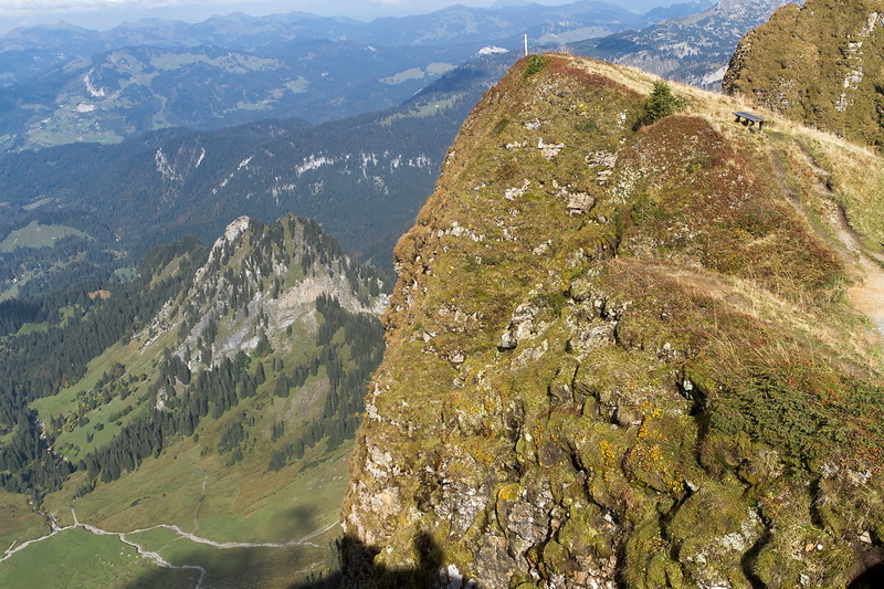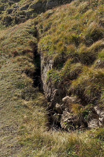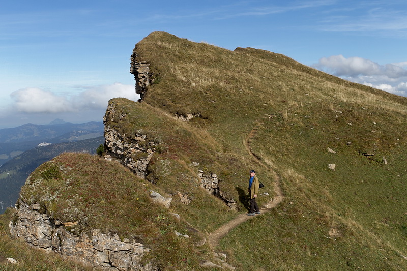Gently rising grassy slopes and steeply falling north faces are typical for the mountains in the Bregenzerwald area. Cracks in the summit ridge are showing the effect of the erosive action and some of the holes might be deeper than expected.